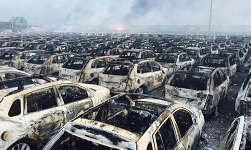 在在天津港仓储场地的汽车大约5000辆,近1500辆过火损毁,还有部分车辆受到爆炸冲击波震碎车窗玻璃等不同程度的影响,这批受损汽车全部买了保险,