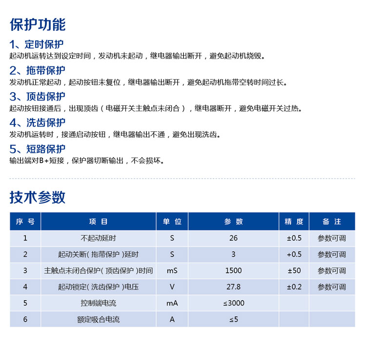 起动机保护器保护参数: